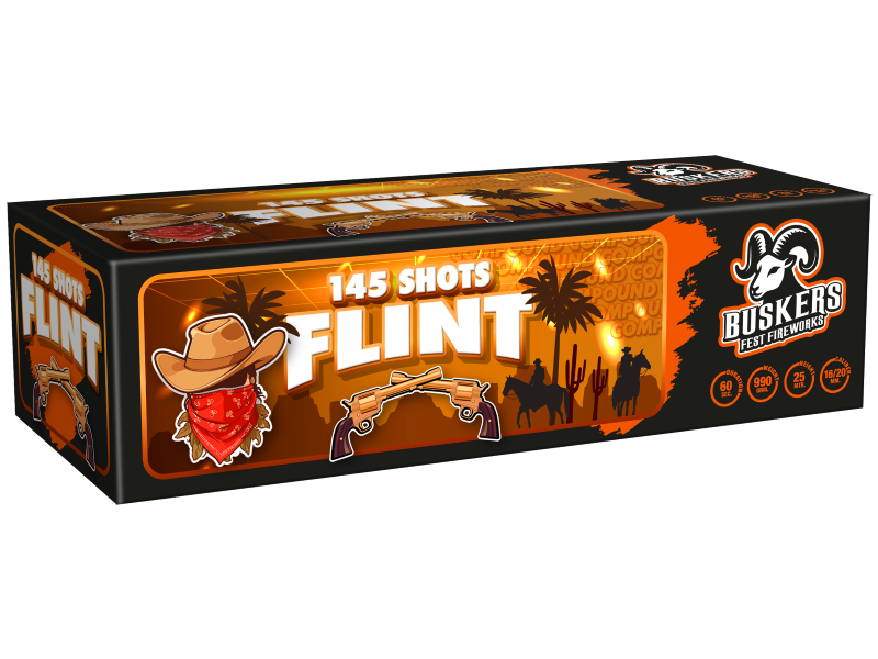Flint weet precies hoe je de hele buurt moet vermaken: een complete show met prachtige glitterstaarten gecombineerd met waaiervorm crackling chrysanthemum.