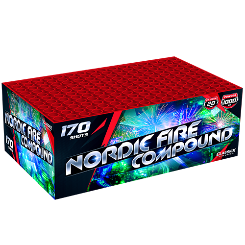 144 shots compoundblok met rode bombettes en blinkende palmen. Totaal 2 kilo kruit in deze compound. Verkozen tot cakebox van het jaar in 2016, 2017, 2018 en 2019!