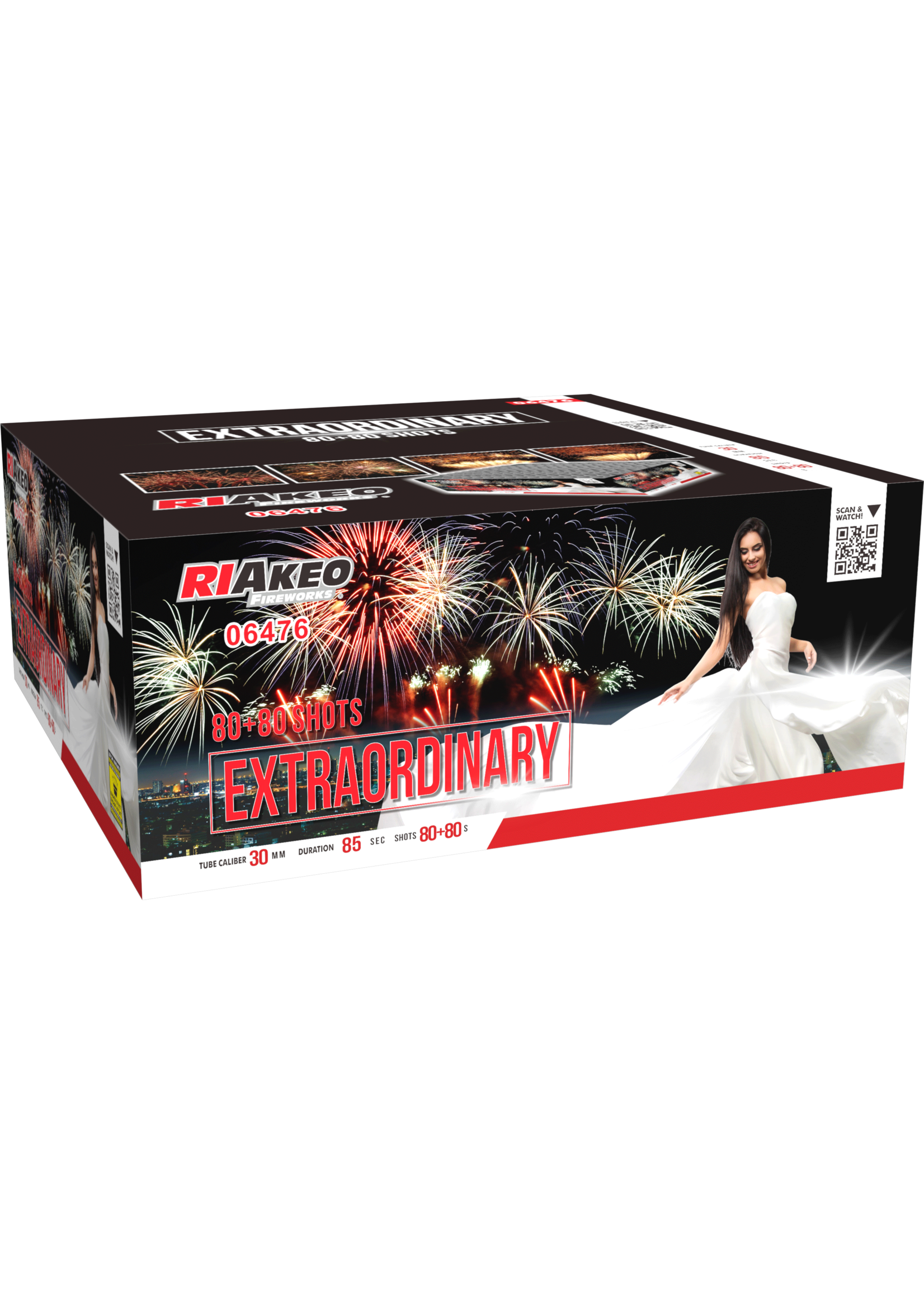 Riakeo op z'n best. Double compound Extraordinary! Effecten die je normaal alleen in professioneel vuurwerk zou kunnen tegenkomen. Perfectie! Bekijk snel het filmpje en laat je verrassen. Limited stock!