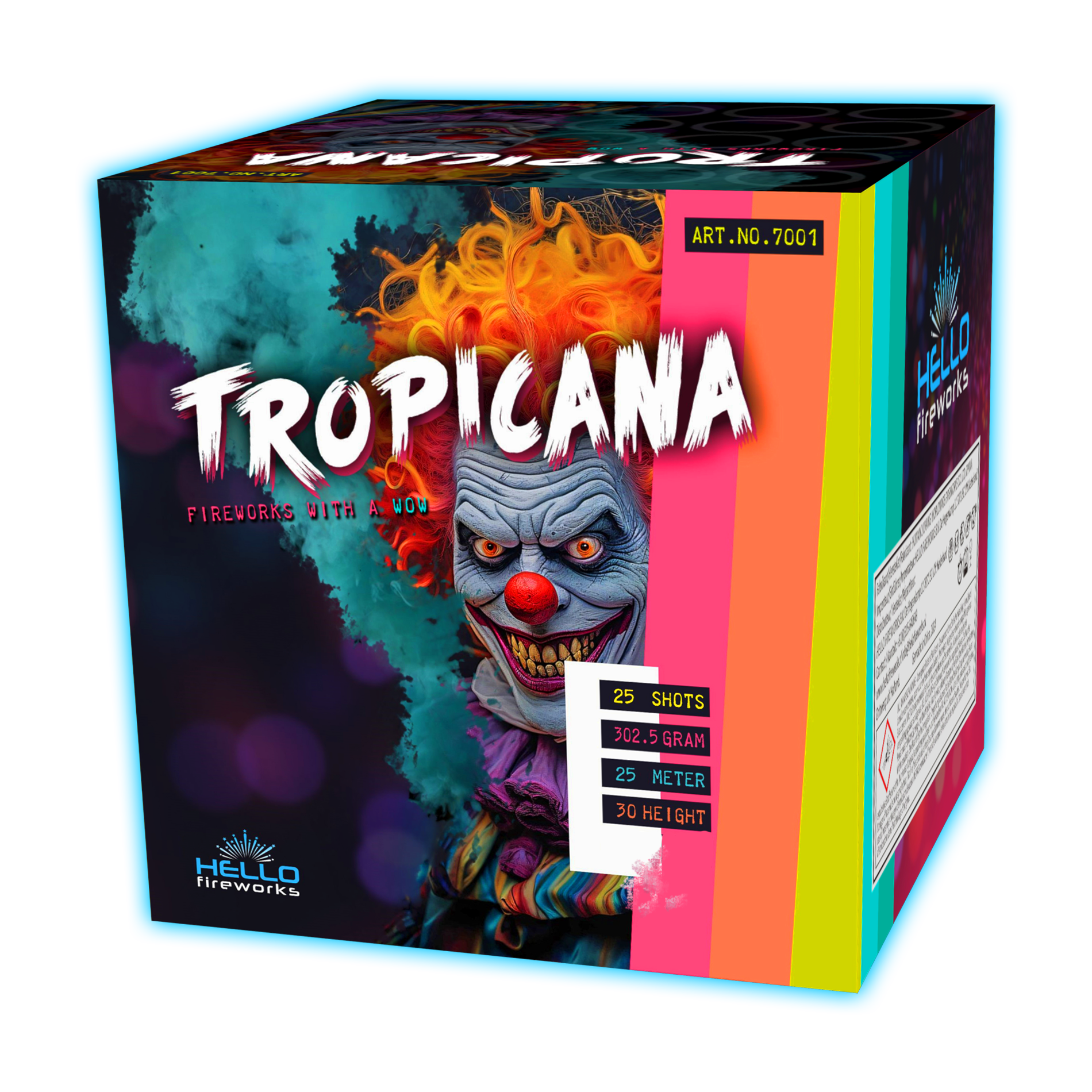 144 shots compoundblok met rode bombettes en blinkende palmen. Totaal 2 kilo kruit in deze compound. Verkozen tot cakebox van het jaar in 2016, 2017, 2018 en 2019!